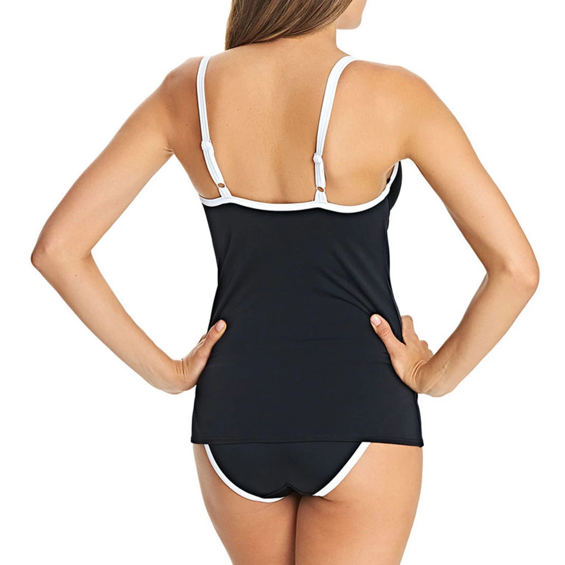 Simple yet striking, Back to Black offers a brand new monochrome collection, full of fashion-forward designs and contemporary styling. The moulded tankini top provides a fashionable fit with seam free cups and a low centre front for an enhanced cleavage.