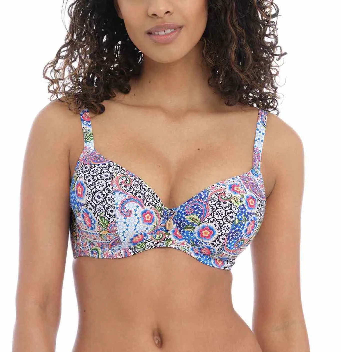 Inspired by the beauty of porcelain mosaic designs, the print plays with a mix of pastels and brights to create this on-trend look for Boho Breeze Plunge Bikini Top.