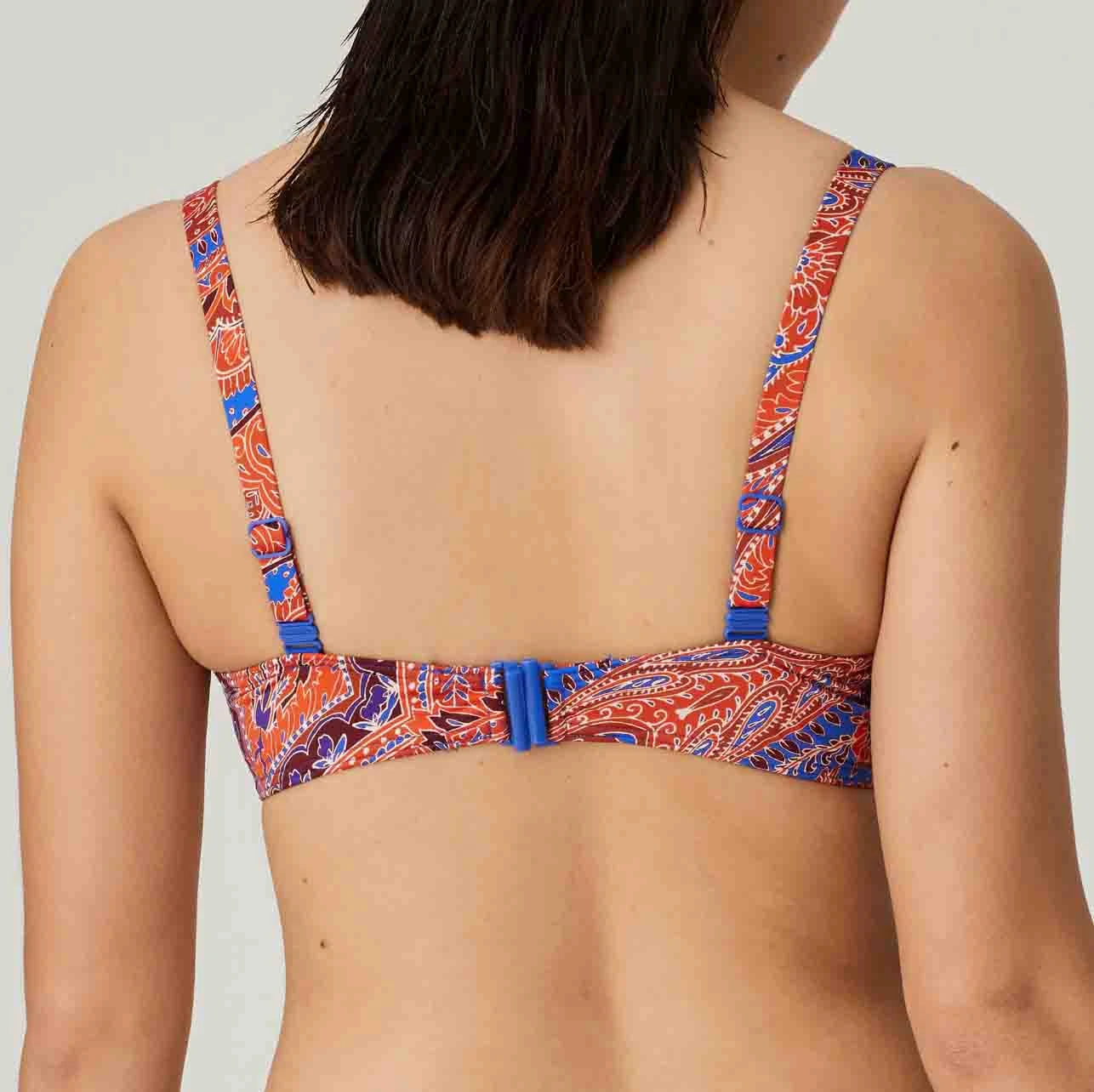 Casablanca Padded Balcony Bikini Top with padded cups and an ethnic-chic paisley print. The golden rectangles on the shoulder straps add an extra-glamorous touch.