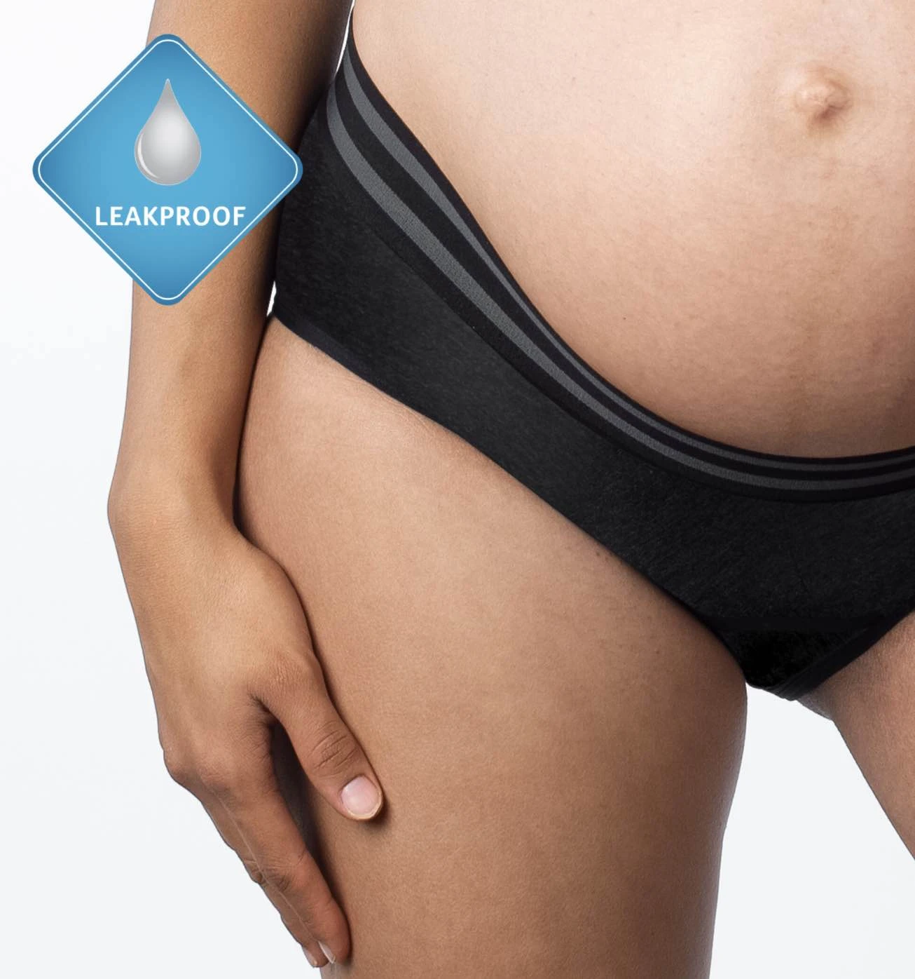 Elevated Cotton Leakproof Hi Brief in breathable comfy cotton with super soft striped waist elastic and featuring light leakproof gusset protection that extends up the back, great for lying down to feed and sleep, for light leaks, discharge, and spotting