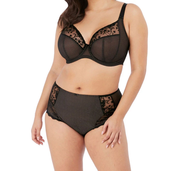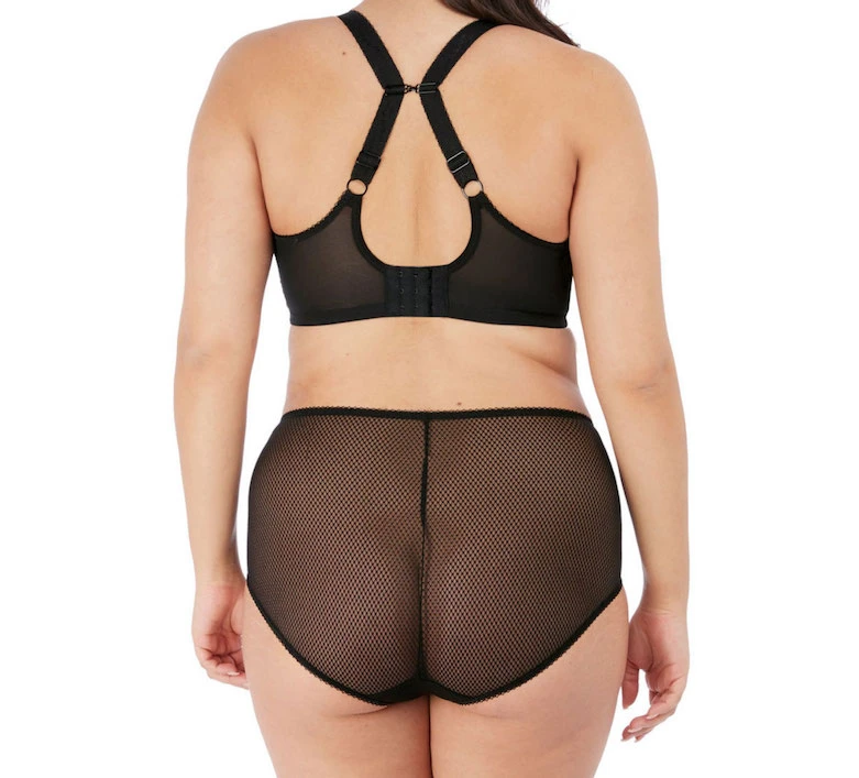 The Elomi Charley Full Brief has a comfortable high rise fit, sheer lace rear, and sexy fishnet overlay at front. Made of nylon, polyester and elastane.Sewn-on elastic waistband with picot lace trim along top. Bow sewn on at center front waist.Opaque front has a fishnet overlay.Sewn-on elastic with picot lace trim along front of leg openings.High rise.Moderate rear coverage.Sheer, scalloped lace rear with floral designs.Keyhole centered at top of rear.Center back seam for a defined fit.Sewn-in cotton crotch for comfort.