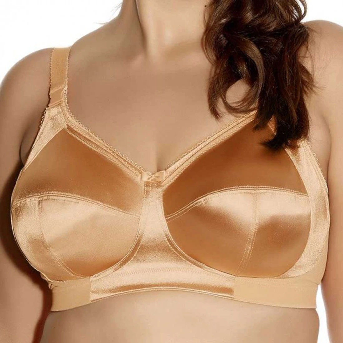 This lustrous nursing bra features 4-part cup construction with side panel for breast projection and preventing “side spill.” Wireless, multi-part cup has an integrated side support panel to ensure a supportive fit and with a full frame sling to keep breast centered and supported.Cup is unlined (unpadded), with transversal and vertical seaming shape you.Wide elastic underband adds stability and support.Plastic nursing clips let you unclasp while holding your baby.Wide restricted stretch elastic straps are embossed for a feminine touch, and adjust in back with coated metal hardware.Tall sides and back are power mesh with elastic at top and bottom for a more custom fit and support. Note : “Goddess items may take up to 3 weeks to dispatch”.