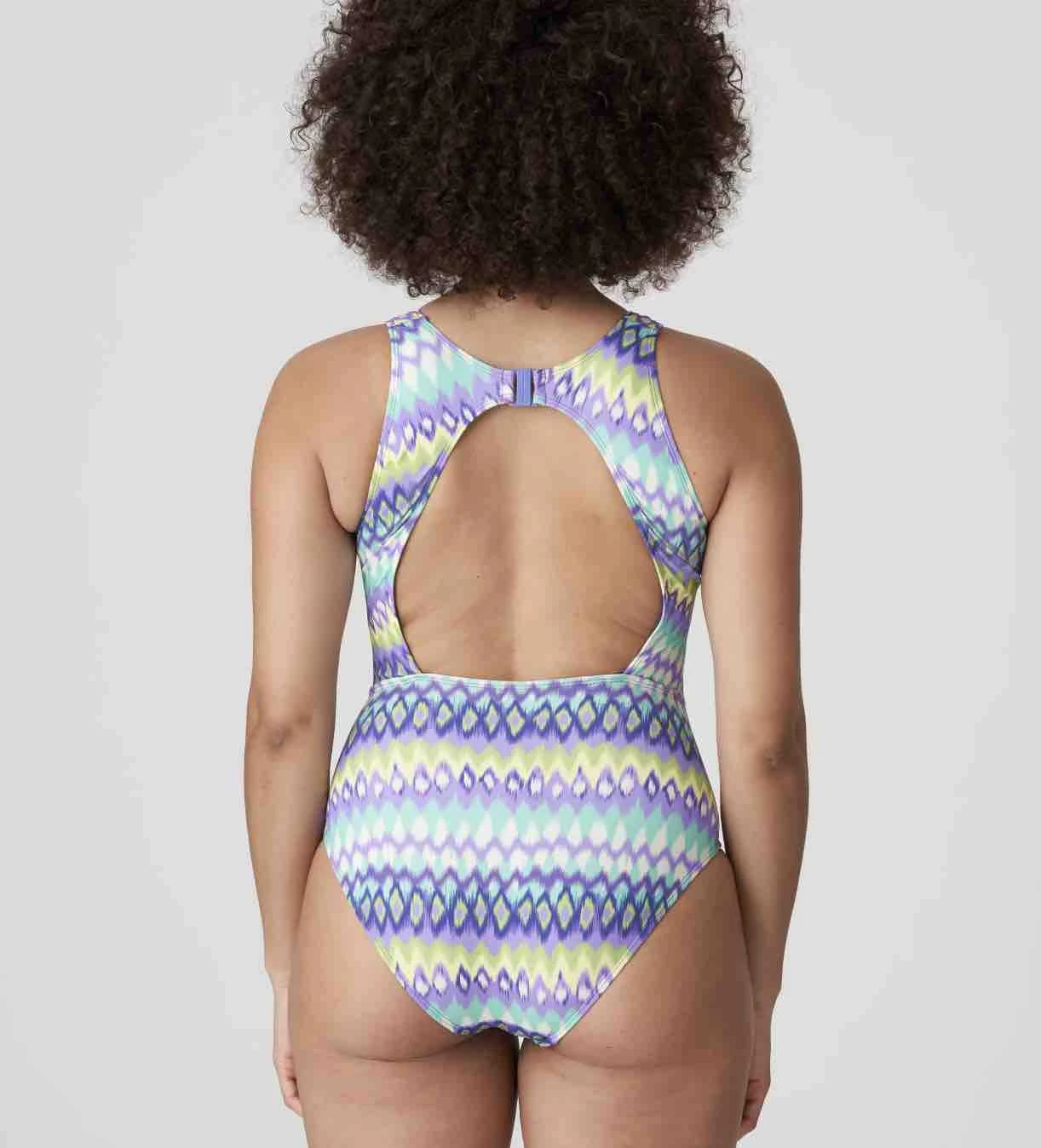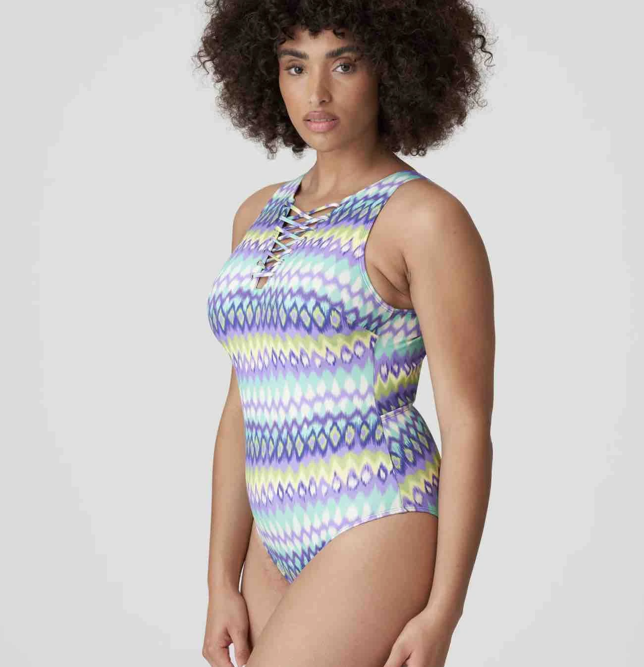 Trendy Holiday Mezcalita Blue Special Swimsuit with drawstring to create the perfect cleavage, and elegant, low cut back. This wireless swimsuit has padded cups.