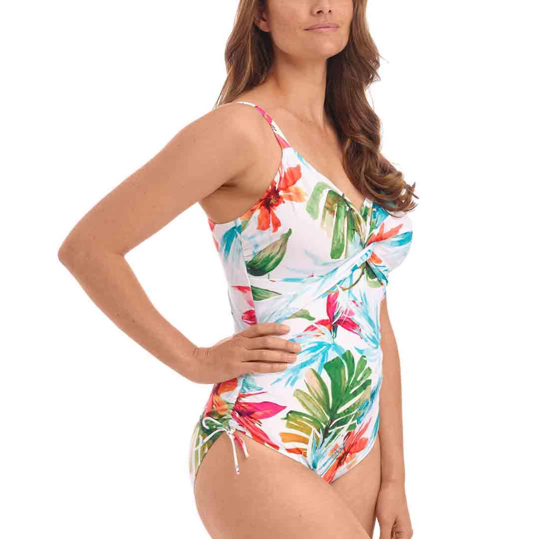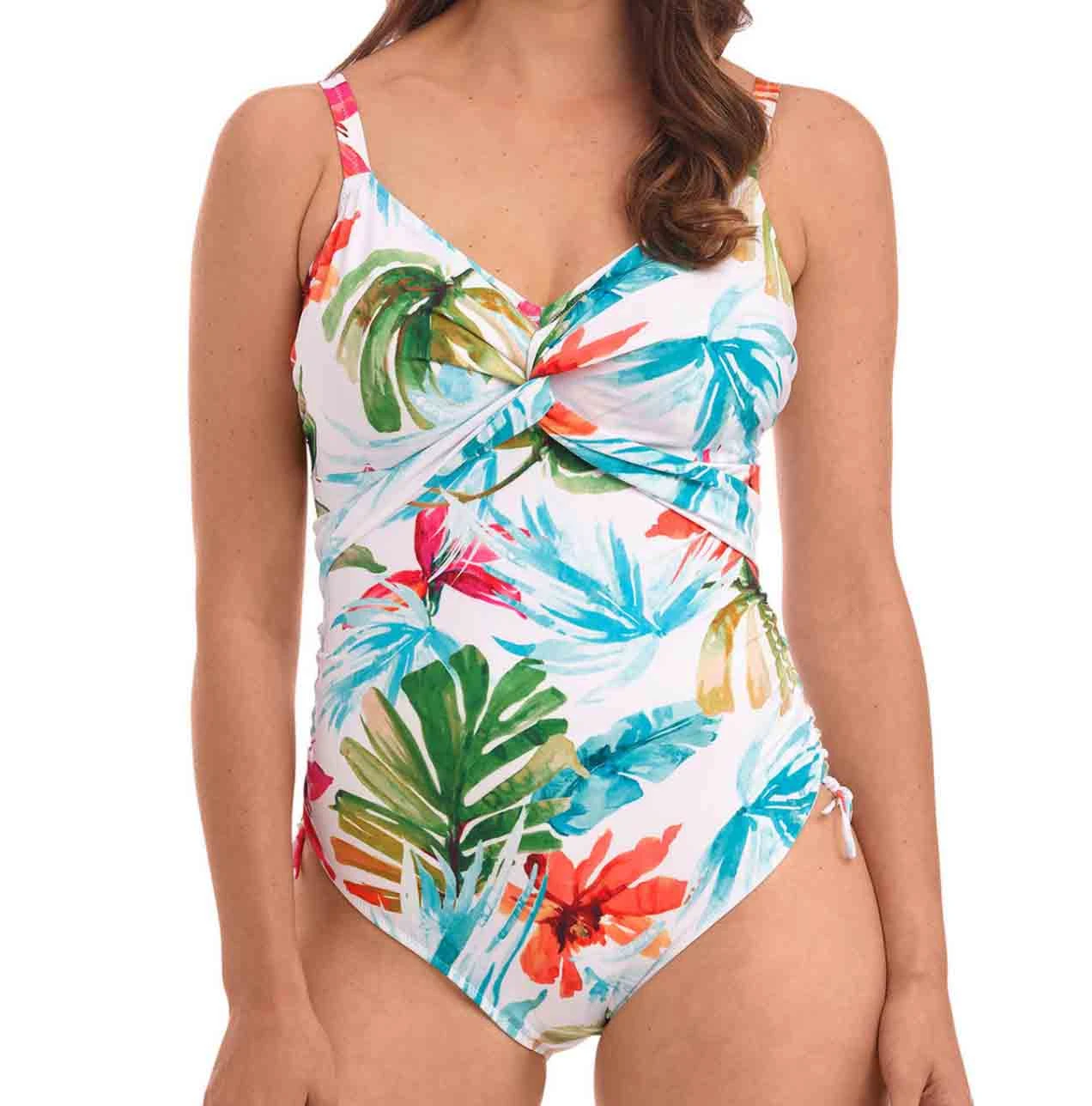 Adjustable tie sides of Kiawah Island Twist Front Adjustable Leg Swimsuit offer ruching effect to flatter tummy area and variation of body length.