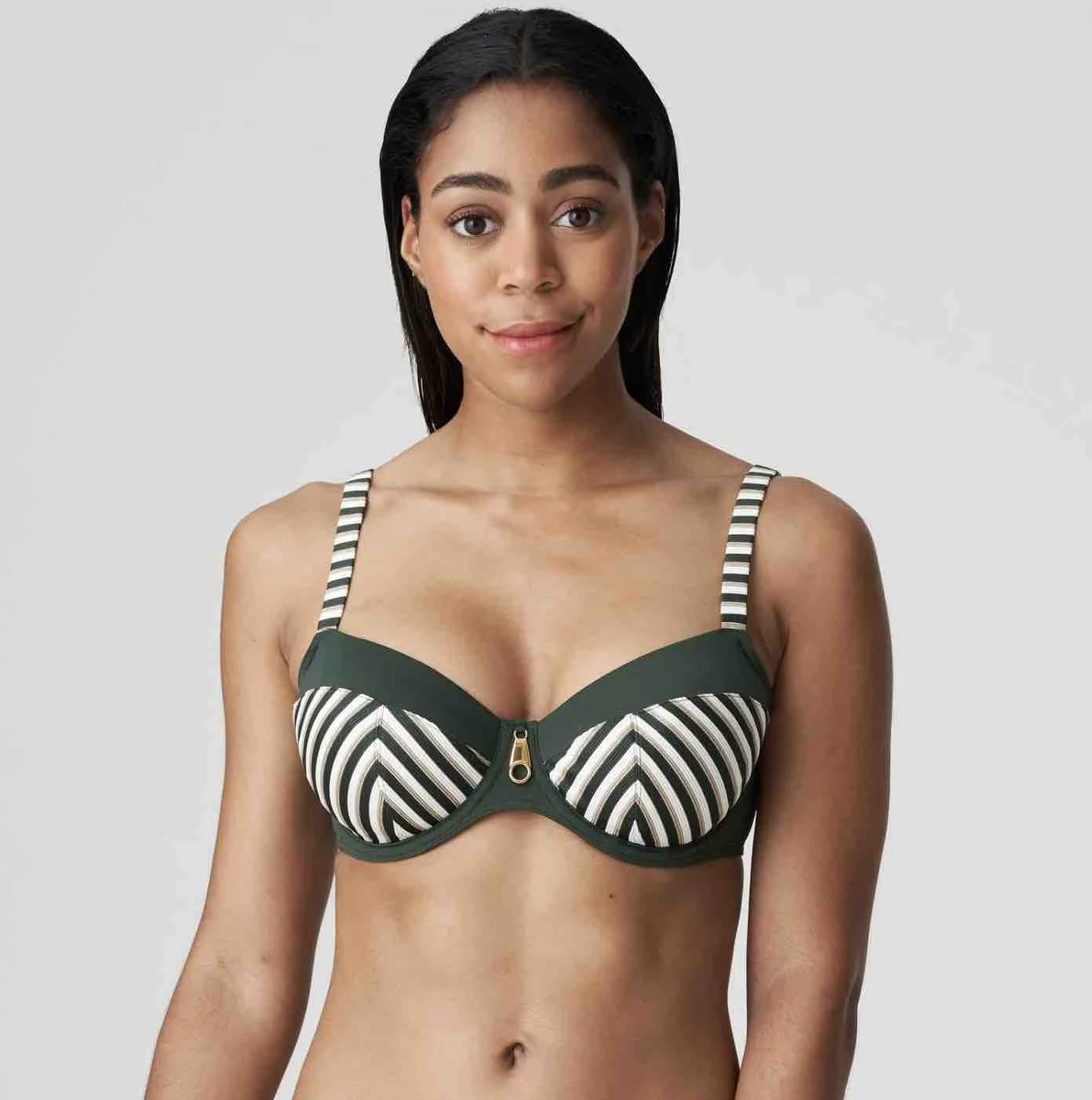 The La Concha Full Cup Bikini Top with a subtle striped texture is chic and elegant. The graceful play of lines creates a stunning silhouette. Featuring non padded underwired cups that offer great coverage, comfort and support, this bikini top can also be worn halterneck style!