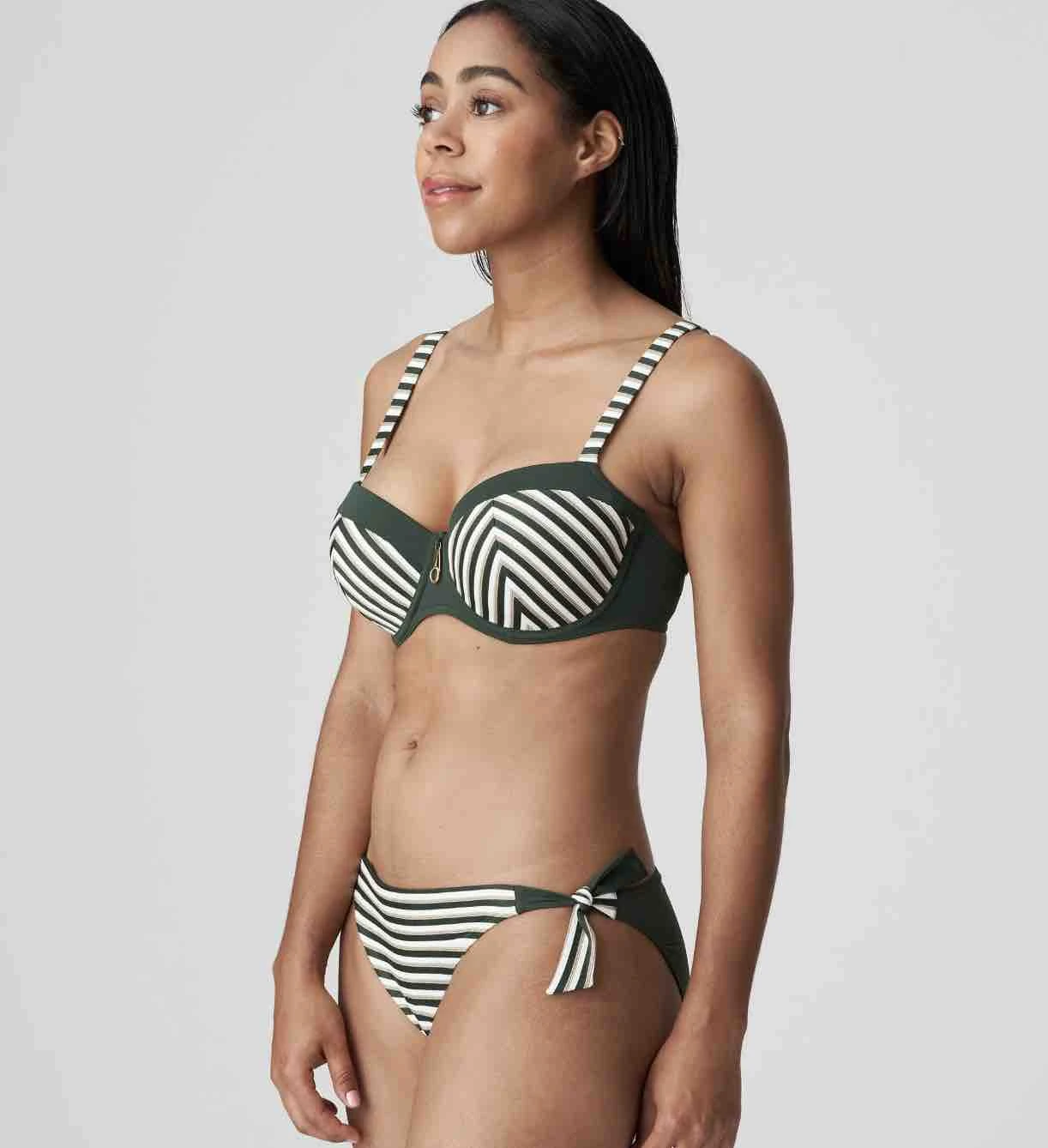 La Concha Padded Balcony Bikini Top with padded underwired cups and a seductive balcony cut enhances the cleavage and offers excellent shape, support and lift. The elegant stripes, solid-coloured fabric, and delicate ribbed structure create a super-feminine silhouette. Adaptable convertible straps give this bikini top range, allowing you to wear both over the shoulder or halterneck styles.