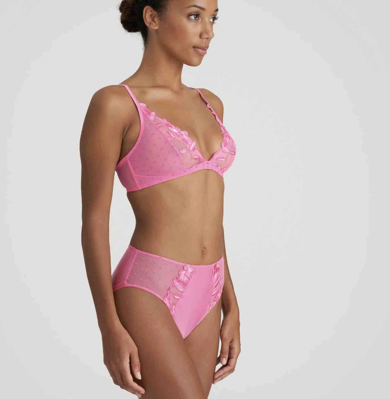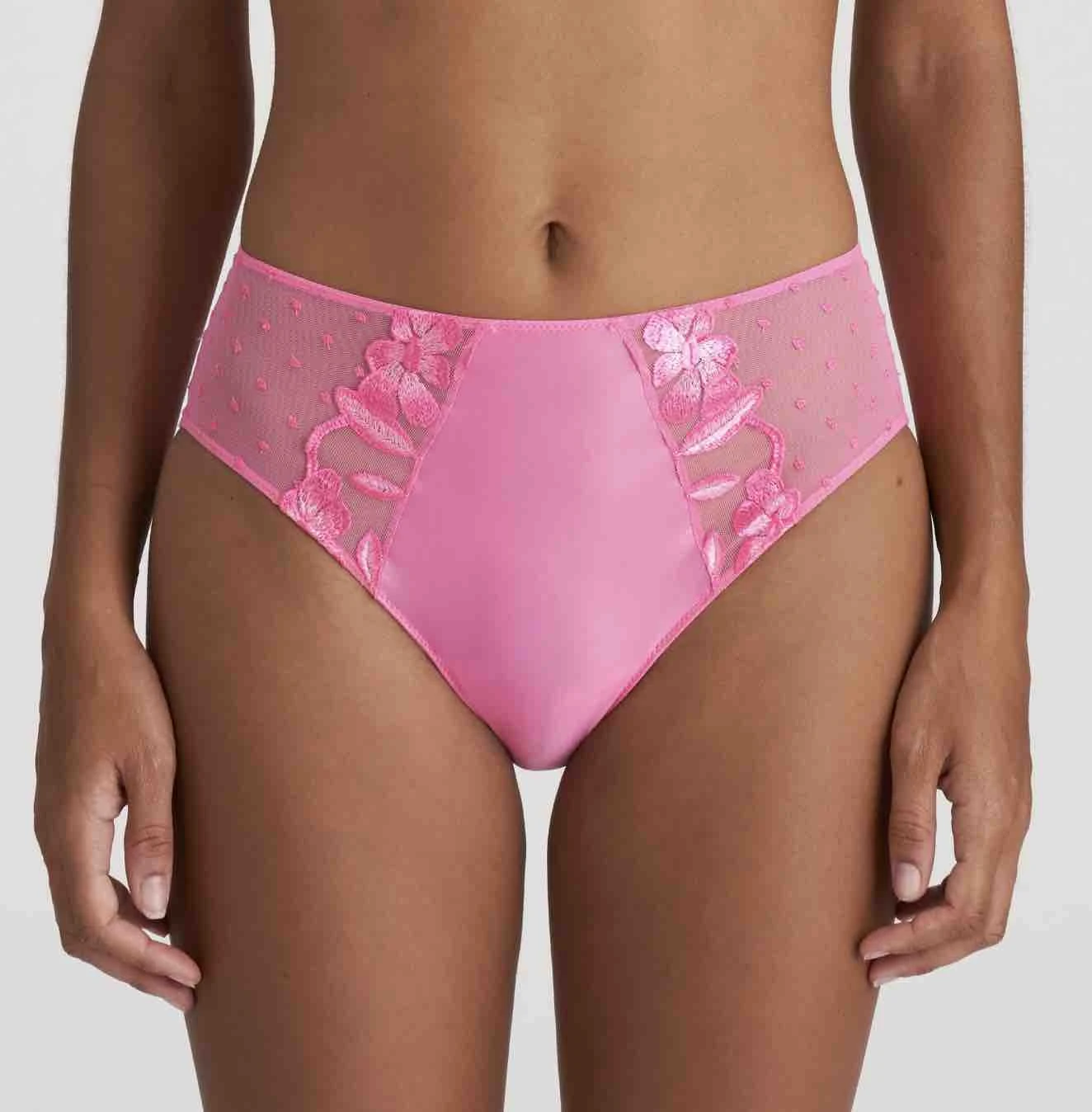 Elegant Agnes Full Briefs have a classic high-waisted design with moderate rear coverage that creates a comfortable fit, perfect for everyday wear. Featuring semi sheer dotted tulle and opulent floral embroidery, these briefs are sophisticated and stylish.