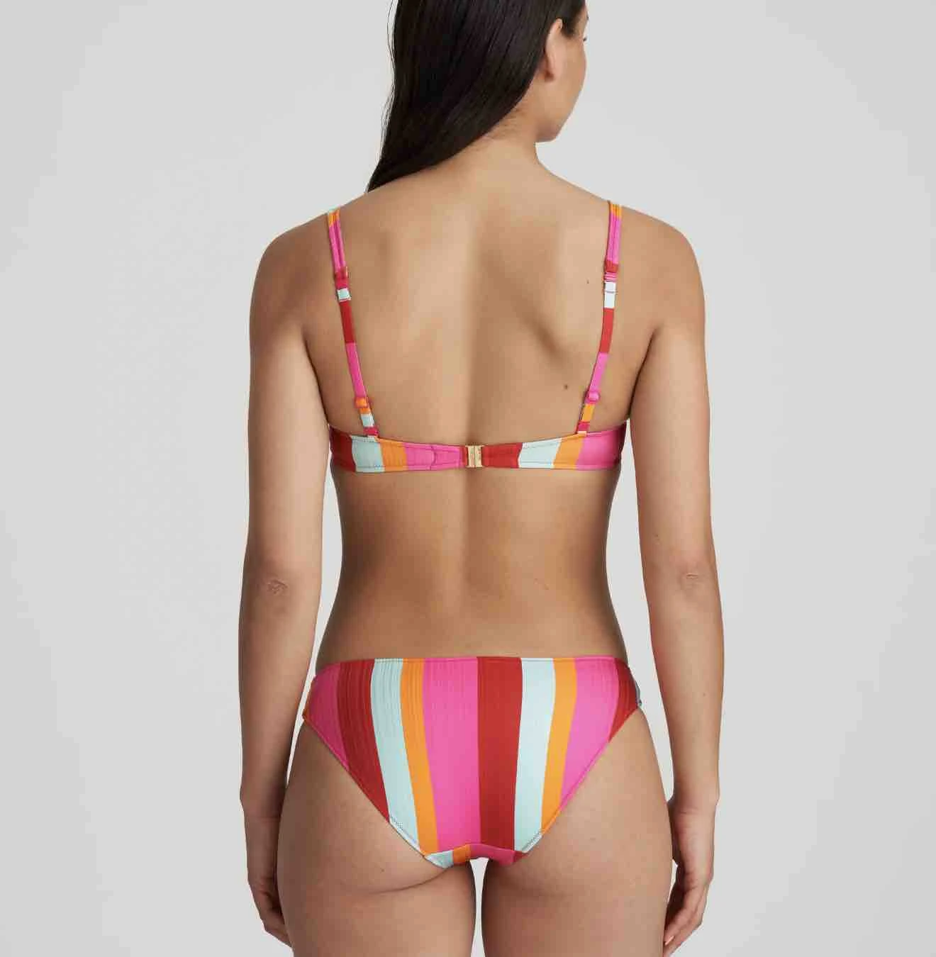Marie Jo’s Tenedos collection is a striking choice for luxurious beachwear. This bikini top boasts eye-catching bright colors that are sure to make a statement. The flattering balcony-style accentuates your curves while remaining comfortable. The underwiring and padded cups provide subtle shaping for a secure fit. With adjustable shoulder straps that can be worn as a halterneck, traditional, or cross-back style, this top offers versatility. Pair it with other items from the Tenedos range for a fully coordinated look.