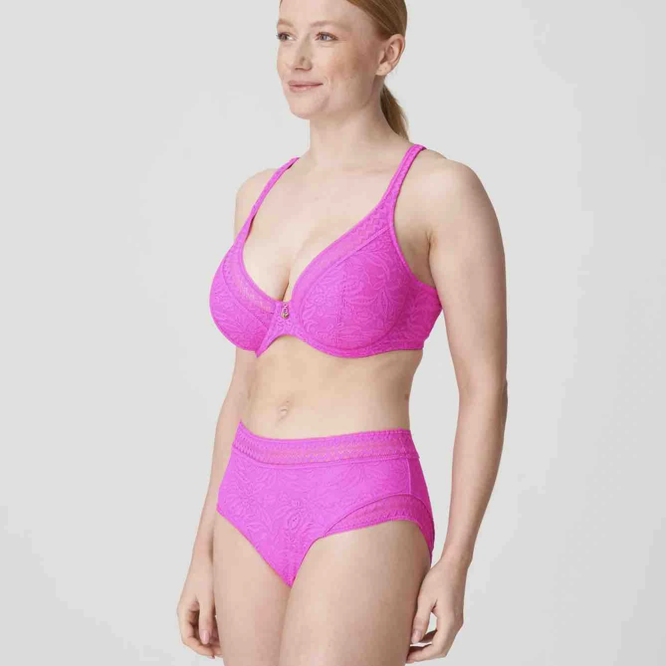 The high-waisted Palermo Full Brief offers complete rear coverage and is popular year-round thanks to its comfortable fit. Featuring a playful combination of retro and graphic semi-sheer embroidered lace and a wide waistband that provides a secure fit. A trendy, seductive lace look and a must-have in your lingerie drawer.