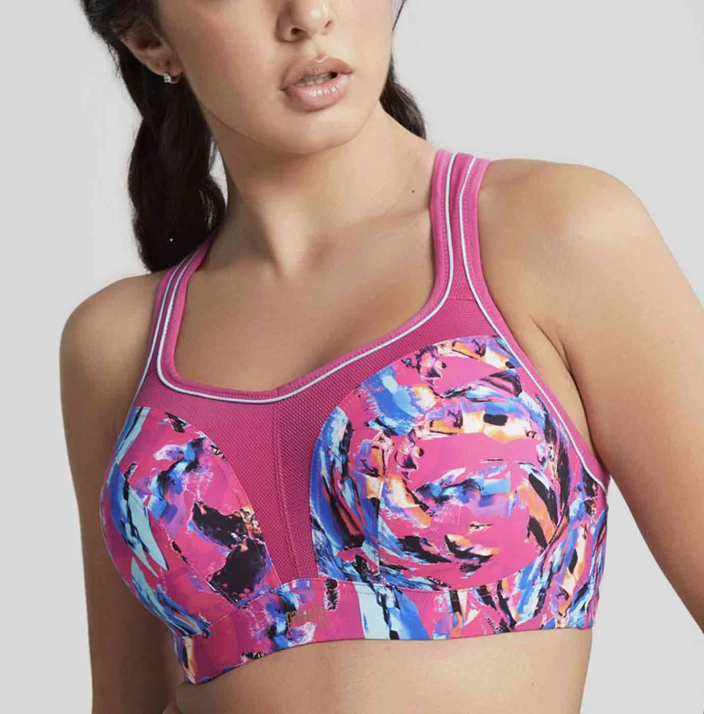 Fashion-forward, comfortable and supportive, the Panache Sports Bra, provides you with maximum support and a stylish design. The moulded seam-free inner cups encapsulate each breast, offering control and giving a defined shape whilst the wide cushioned shoulder straps, with racer back ring detail offer additional stability and support, dispersing pressure whilst exercising. The breathable outer performance fabric also offers ventilation, allowing you to keep dry and comfortable whilst working out. Perfect for both high and low-impact exercise, it’s a definite must-have for all you stylish fitness fanatics out there.