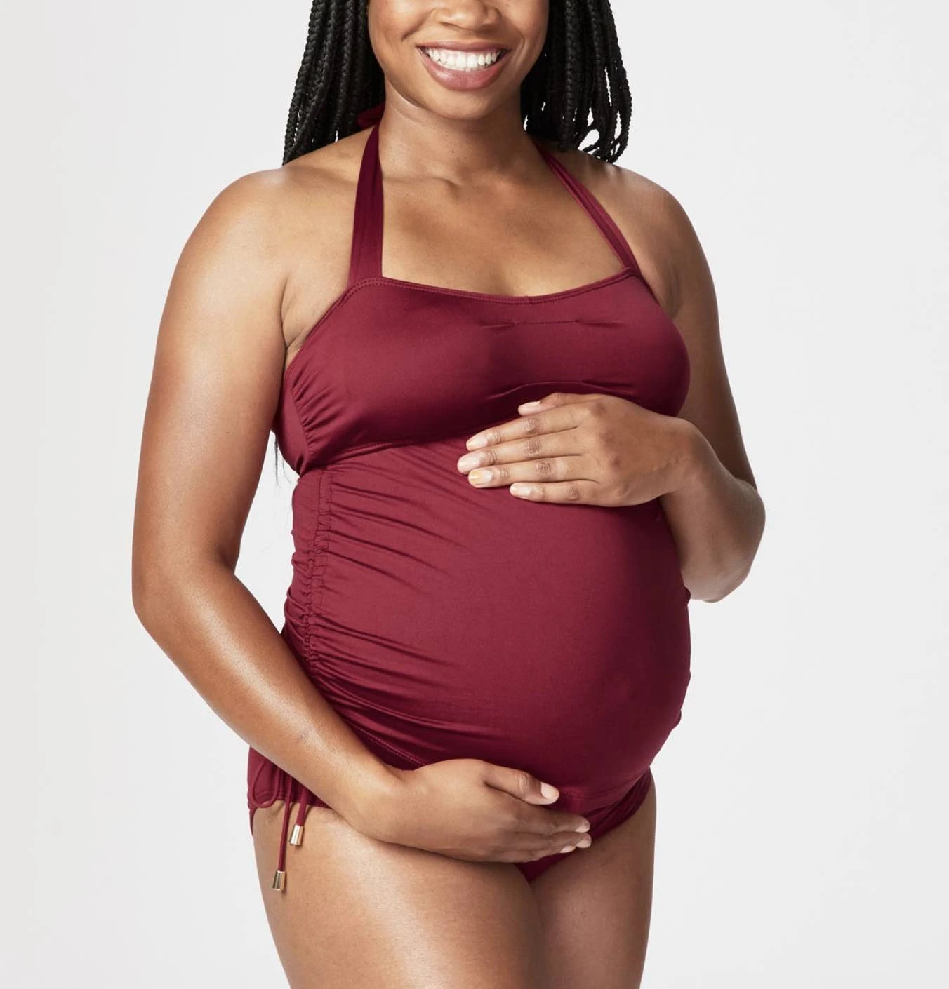 This Rosewater Cordial Maternity Tankini Set is for the mama who’s not afraid to make a statement, both in the water and out. With its classic cut and ruched sides, it’s the perfect swimsuit and out-and-about top for those relaxed summer days.