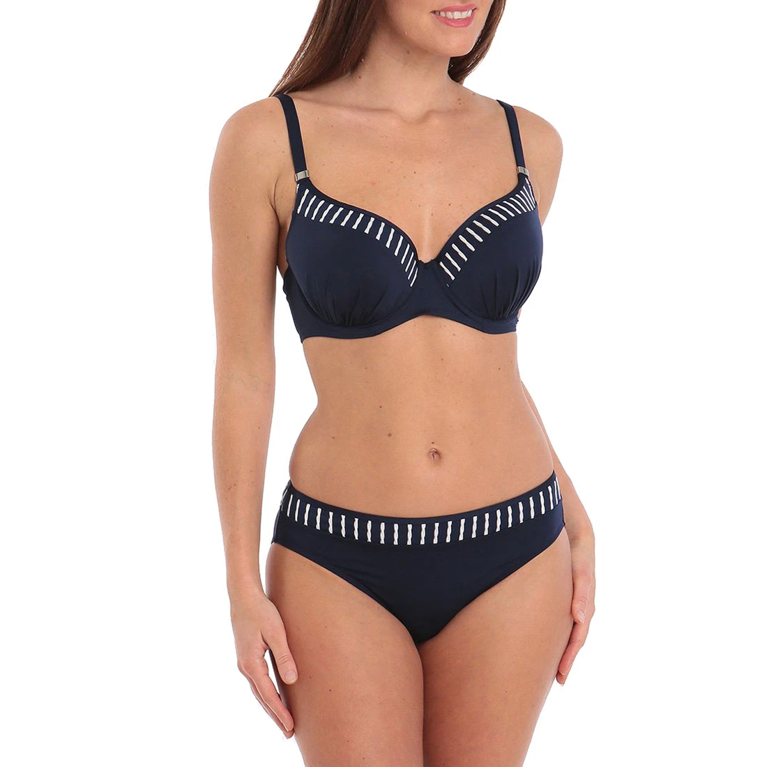 This bikini top features sexy ruching and embraces a popular and timeless nautical colour combination. This bikini top is underwired to offer great support and uplift and is also lightly padded for excellent shape and comfort. With lots of interchangeable designs in this range to choose from, you can mix and match to have different looks each day.