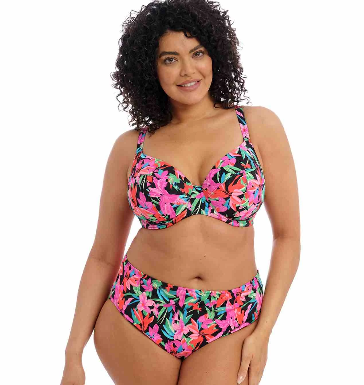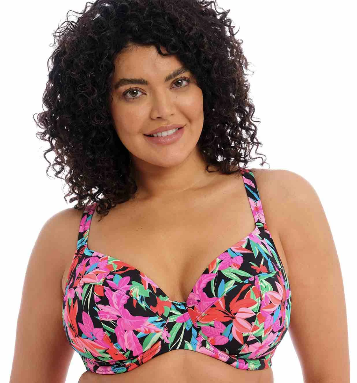 The cups, straps, and back of Savaneta Plunge Bikini Top are cut from a lightweight printed fabric with LYCRA® XTRA LIFE™. Neckline has concealed elastic for ease of fit.