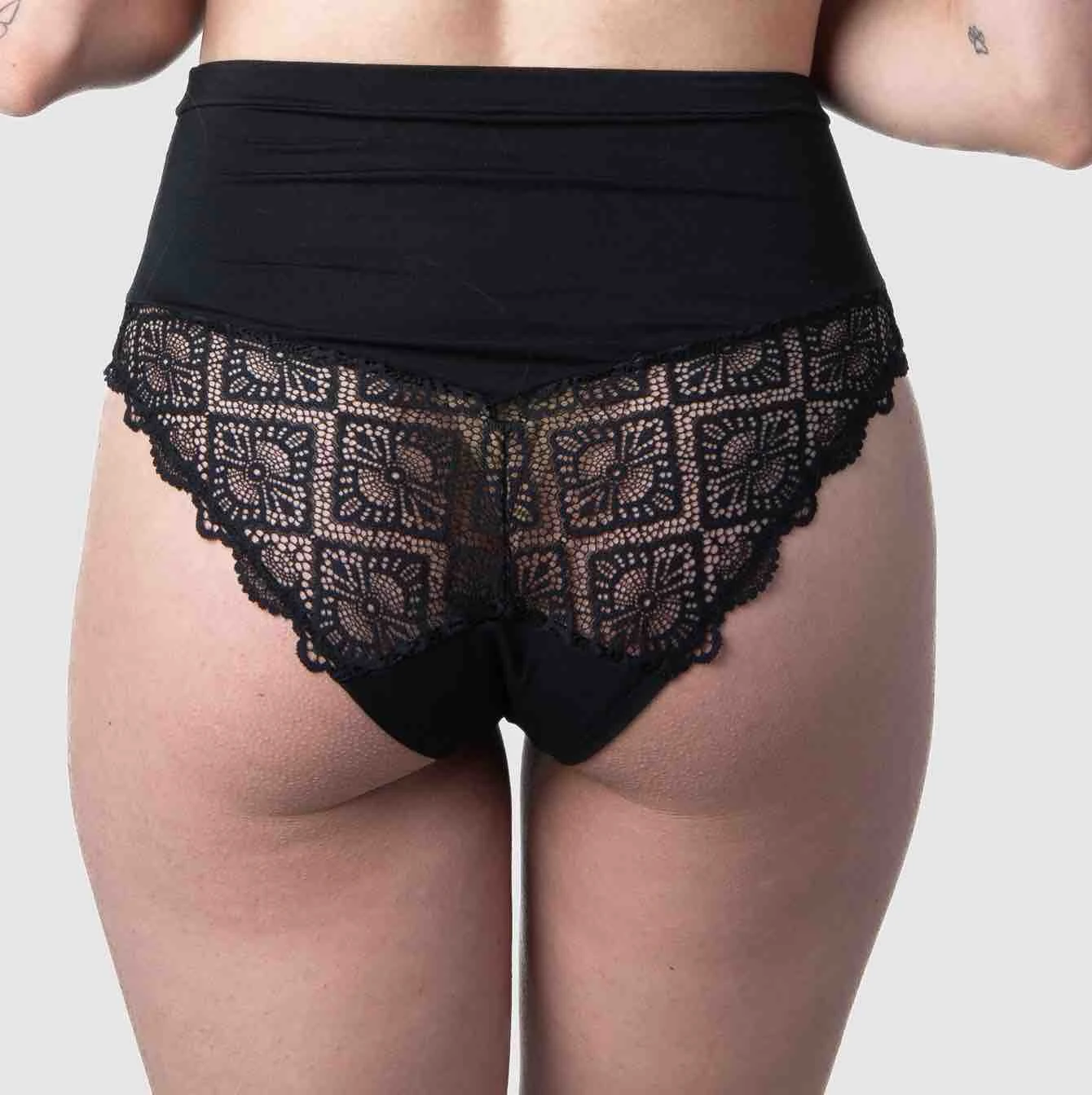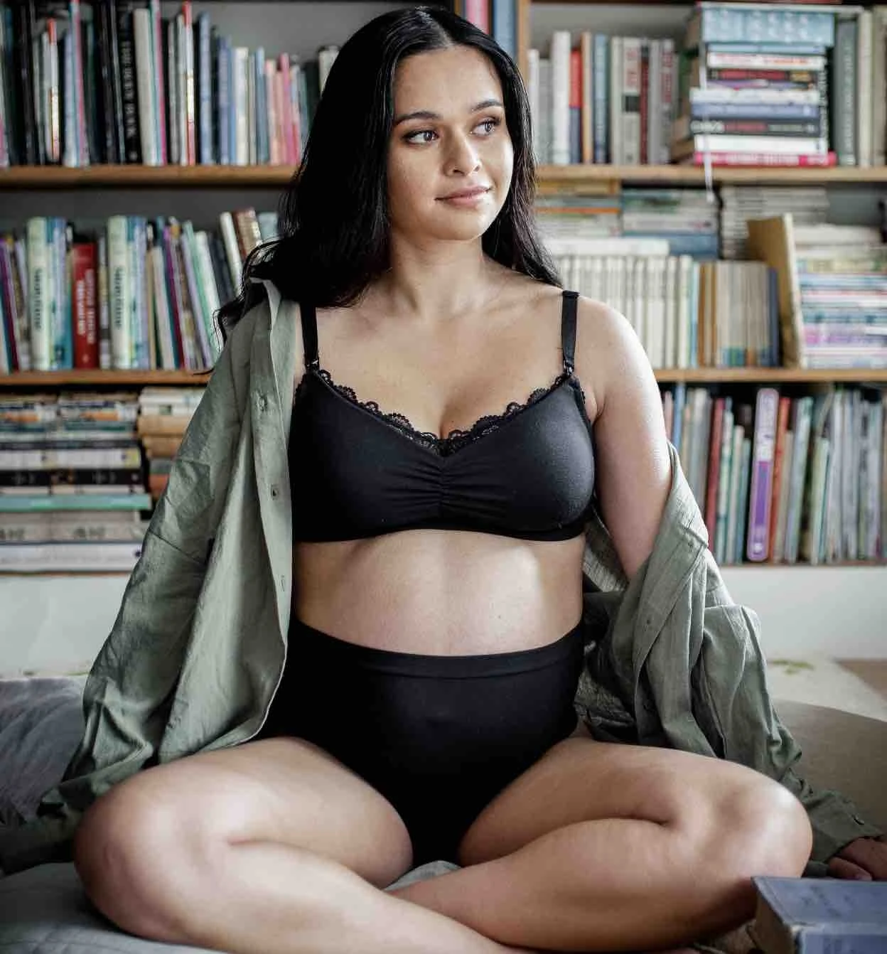 Serenity Bamboo Briefs offer over-the-belly comfort with softly rouched sides and a cheeky lace back. Made with recycled content for complete comfort during pregnancy and postpartum. Experience comfort and support in spades when paired with the Serenity Bamboo Wirefree Nursing bra!