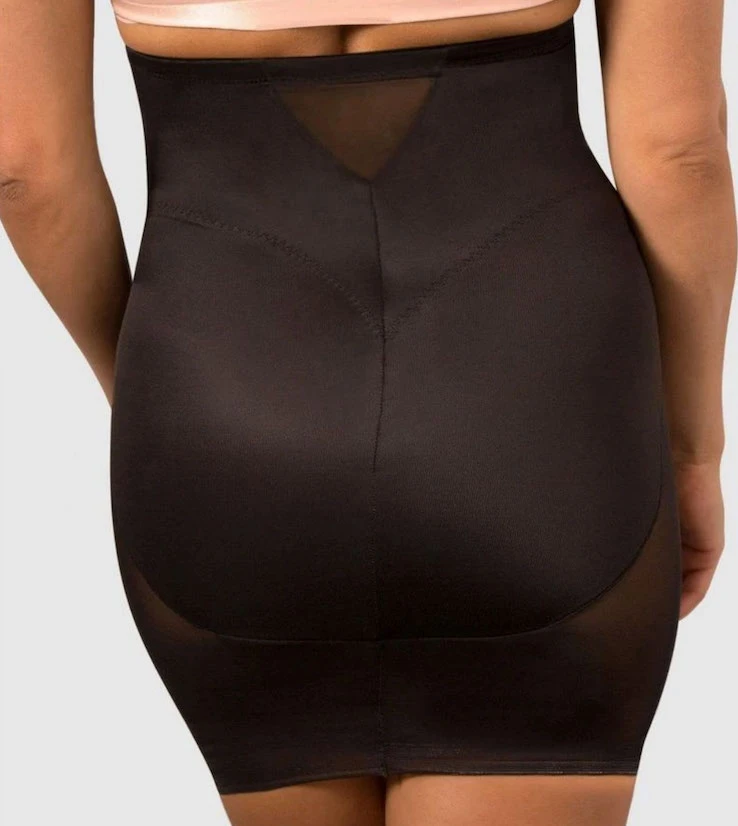 This hi-waist slip from MiracleSuit features sexy, sheer panelling which allows the garment to adjust to your body and create a perfect fit. The double panels provide extra firm control and shaping but maintains a smooth look under your clothes. Choose it to flatten your tummy and shape your hips.