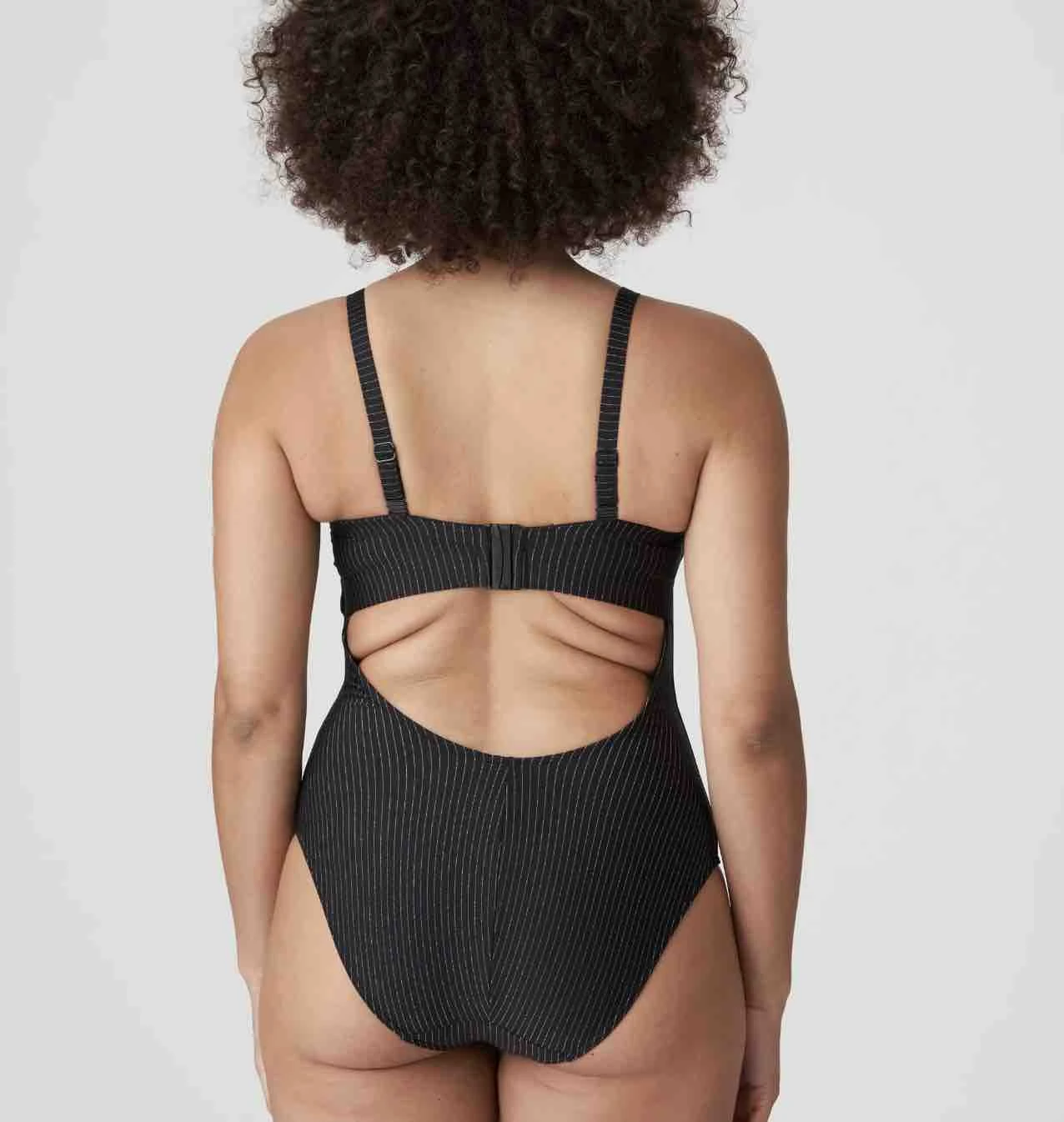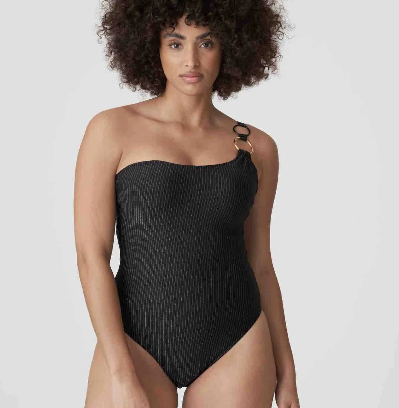 Stylish Solta Special Swimsuit with glitter stripes, an extra low back, and high-cut legs. You can wear it with one or two straps.