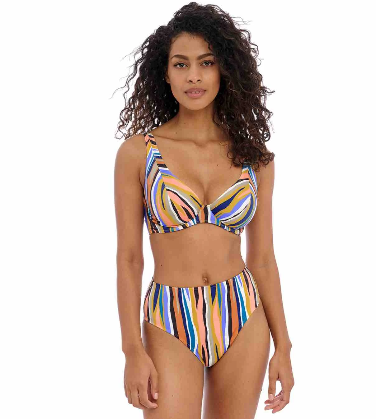 Torra Bay High Apex Bikini Top offers a sexy low plunging centre with wide straps for superior comfort. A contemporary twist on the classic, this bikini top features powernet lined cups for shaping and support, and a J Hook at the back for easy conversion to a racer back style.