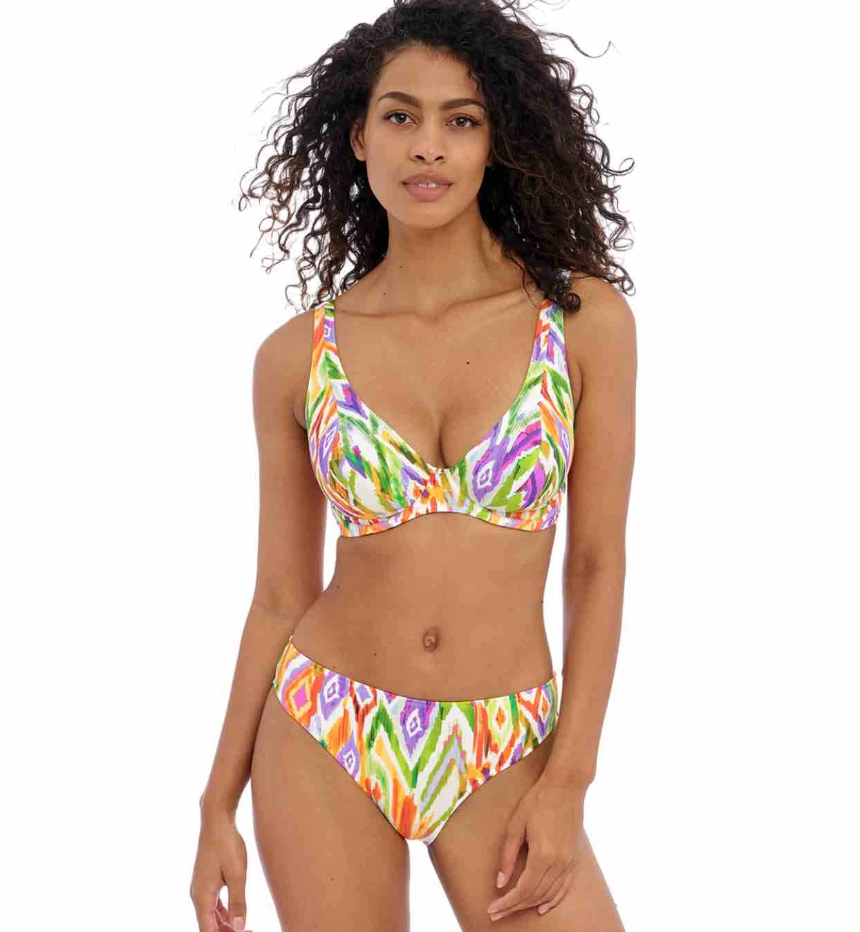 Radiate confidence on the beach with Freya’s Tusan Beach High Apex Bikini Top, featuring a low plunging centre front with wide, comfortable straps. Lined cups offer shaping and support with a stylish J hook feature for easy conversion to a racer back style.
