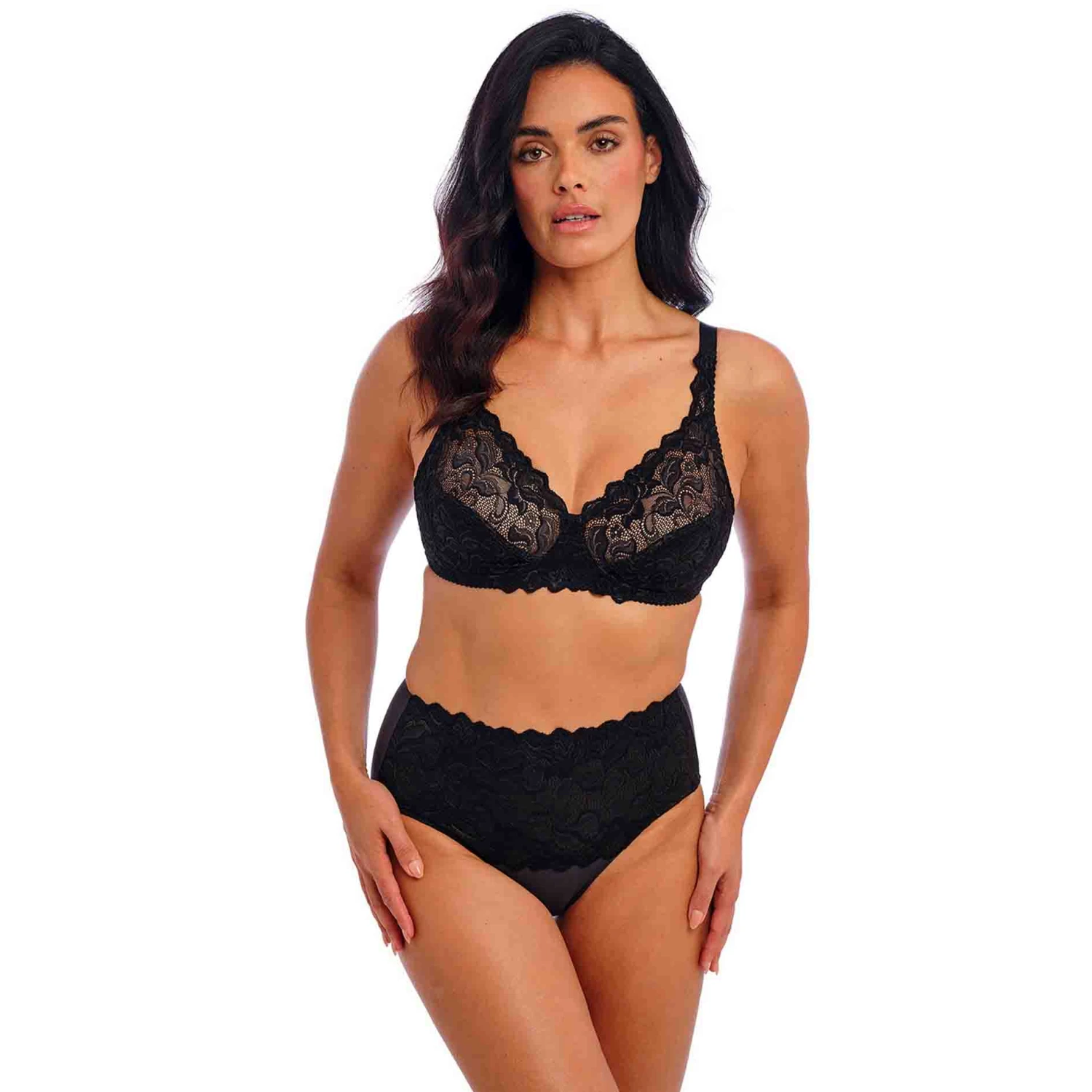 Indulge in Eglantine, with its timeless shapes and uncompromising fit, the use of beautiful, decorative stretch lace makes this collection an essential yet luxurious choice.Stretch lace front panel with scallop at waistline maintains comfort and reduces binding.Fully lined front gives tummy control – smoothing and flattening.Stretch micro back with full coverage.